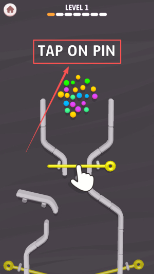 2、按针操作:在关卡界面里,依据提示“TAP ON PIN”,点击图钉来执行交互操作。