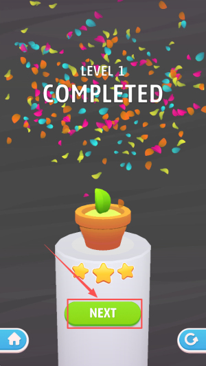 4、通关领取:当界面显示“LEVEL COMPLETED”时,点击“NEXT”按钮,就能进入下一关进行挑战。