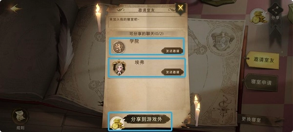 规则包含【寝室更换】和【邀请室友】两个部分,具体可在游戏内查看,这里重点说明【邀请室友】的相关内容: