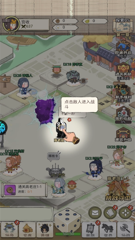 1、打开游戏后,系统会给出清晰的指引,你只需按照提示点击敌人,就能进入战斗环节开启挑战。