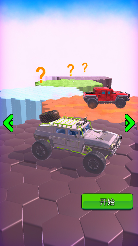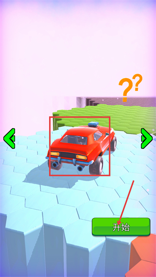 1、挑选红色车辆后点击【开始】按钮进入关卡,初始状态下车辆没有等级加成,需要后续收集部件来增强性能,以此推动关卡的进程。