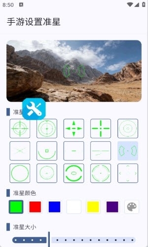 2、基础准星支持DIY设置,可进行颜色、透明度、大小、角度等个性化调整。