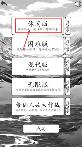 1、选择【休闲版】模式开始游戏,这个模式以轻松的修仙体验为核心,适合新手快速了解剧情和玩法。