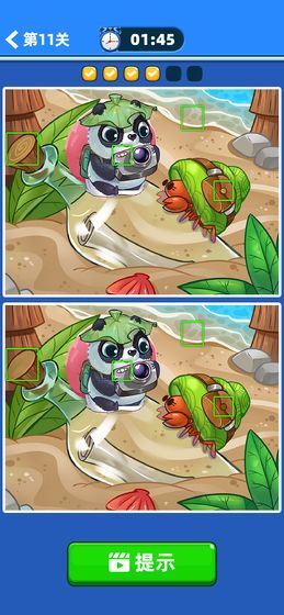 在这款游戏中有非常相似的两张图片来让玩家不断的寻找其中不同的地方,游戏中有时间的规定,玩家需要在规定的时间内找出全部不同的地方才能通关。