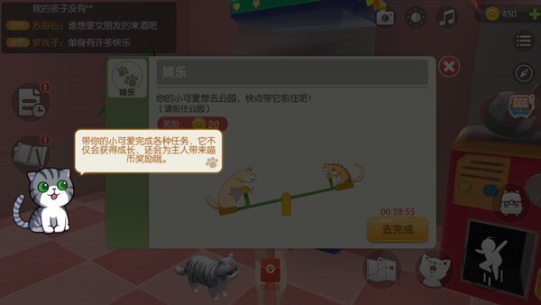 1、可以邀请家人或朋友一同撸猫,在游戏里让猫咪陪伴你、治愈你。