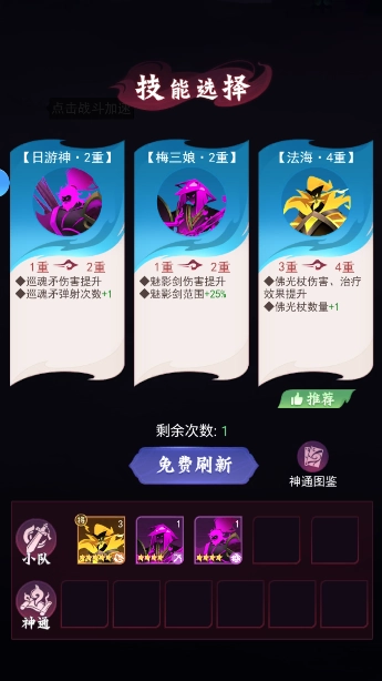 Roguelike觉醒,策略致胜: 每突破一层,你都能从三个随机神通里挑选其一,为你的魂将军团带来强化。