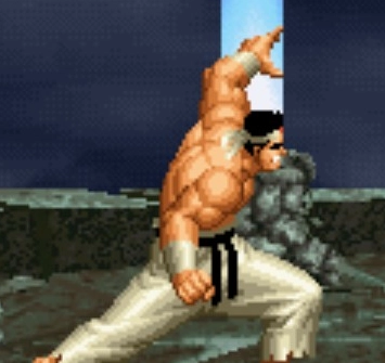 1、超必杀技:地狱极乐落,出招指令:(近身状态下)→↘↓↙←→↘↓↙←+轻拳或重拳。 在拳皇97里,超必杀抓投技存在一个特殊机制——招式一旦使出就必然命中,绝不会出现放空的情况(这一过于强势的设定从拳皇98开始被调整修正)。地狱极乐落作为大门五郎的标志性绝招,是霸气与力量的具象化体现,该招式在近身条件下具备不可防御、不可闪避的特性。