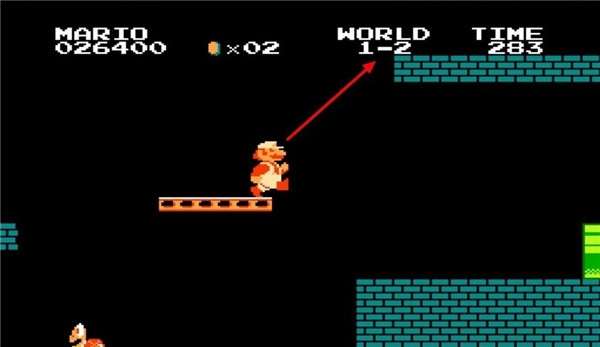 1、通过1-1关卡后进入1-2关卡,利用第二个移动梯选择最上方的路径行进。