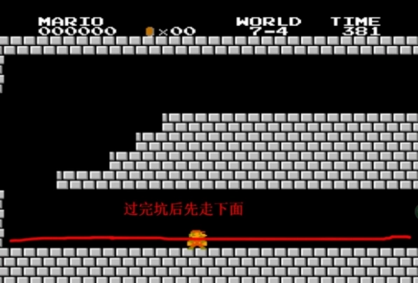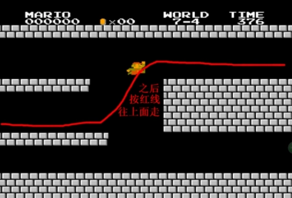 3、接下来会进入4-1关卡,快速通过4-1后进入4-2关卡,在第一个移动梯的后方位置,有一条可以直接通往第八关的捷径。