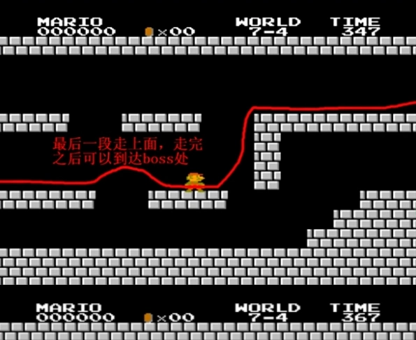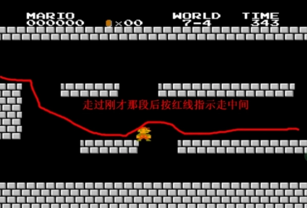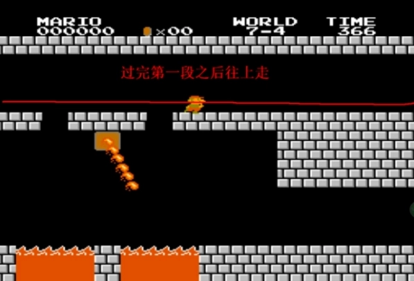 3.接下来,继续依照红线的指引向上行进,走完上方的第一大段路程就能顺利通过,具体可参照图示。