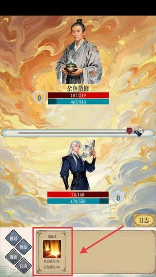 4、战斗过程中可以使用【地陷术】,该术法的威力数值为【36】,每次施展会消耗【40】点法力,需要结合自身当前的法力储备以及敌人的实时状态,选择合适的时机进行释放。