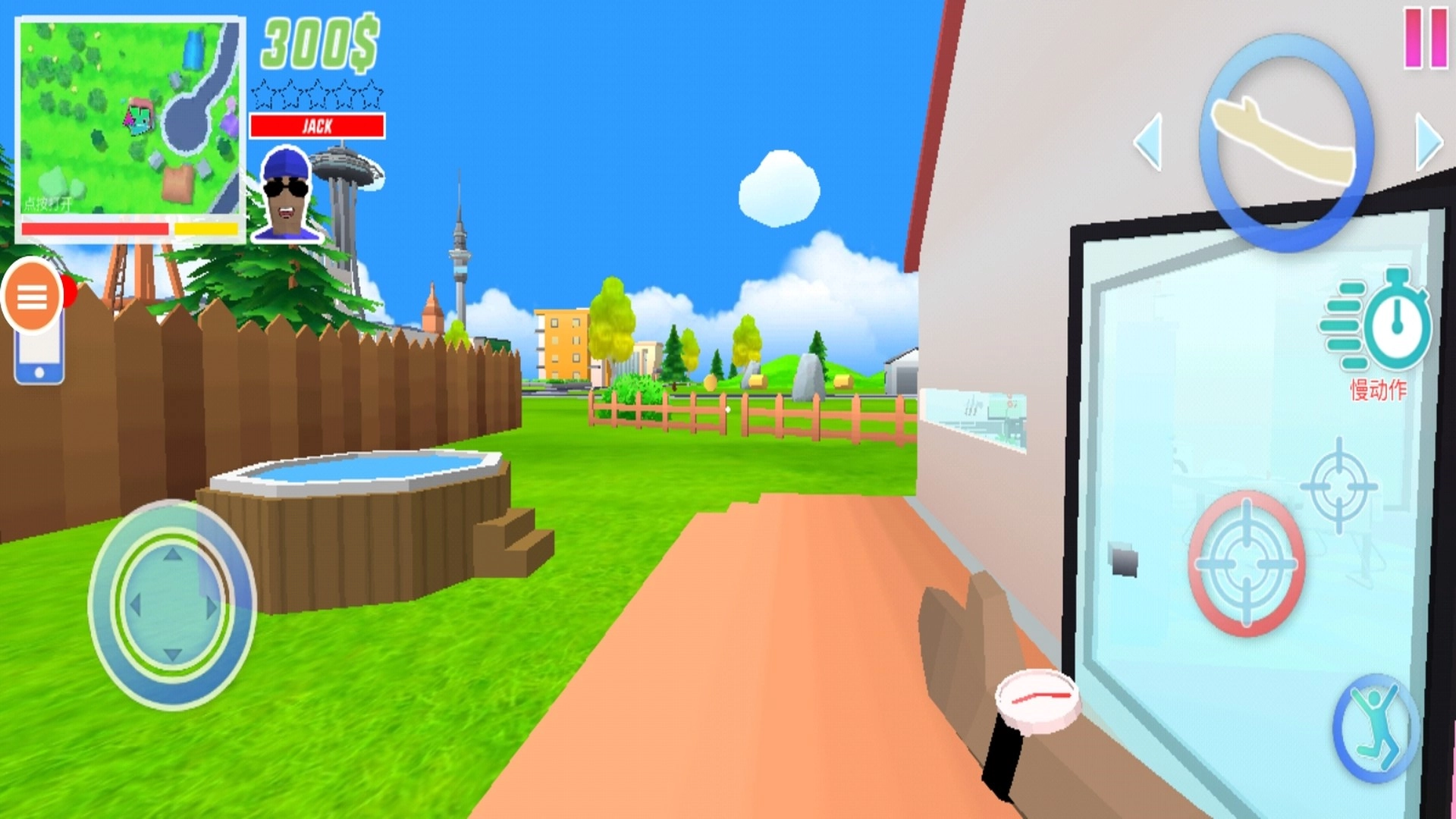 进入游戏后,以第一人称视角展开世界探索,点击屏幕左右两侧即可转动视角,借此熟悉像素风格的城市及其周边环境。