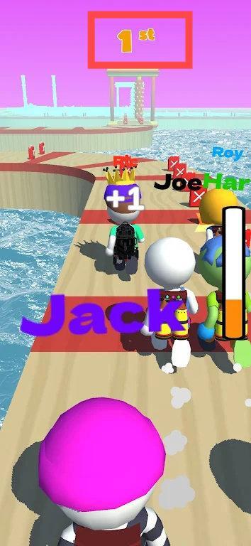 2、比赛中留意赛道上的【+1】道具并拾取,可超越对手提升排名。
