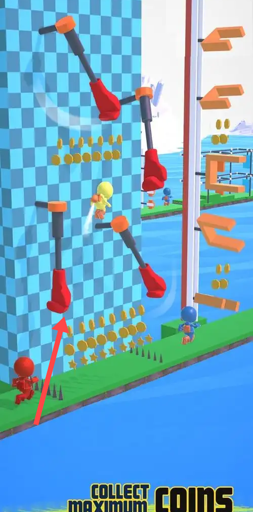 3、在赛道上小心躲避如红色拳击手套等障碍物。