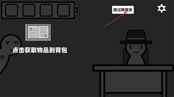 进入教程关卡后,点击物品即可将其收入背包;若不想体验教程,可点击跳过教程关,直接进入后续游戏内容。