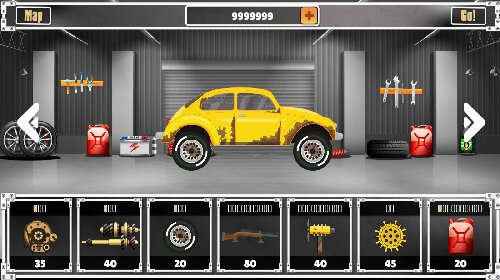2.进入游戏之后,玩家需要利用手中的一切材料,对车辆进行改装,可以使用金币升级部件,利用车辆撞击僵尸。