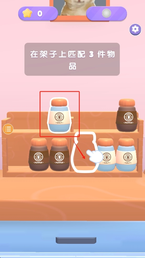 3、最后,在游戏关卡中,按照指示匹配物品,例如点击并拖动盐瓶到指定位置以完成任务。