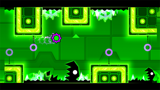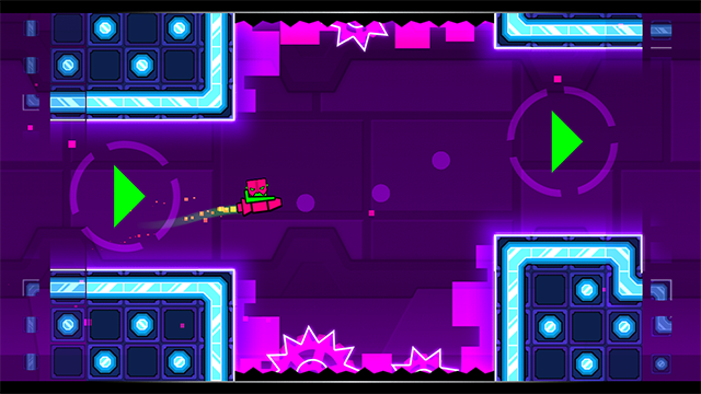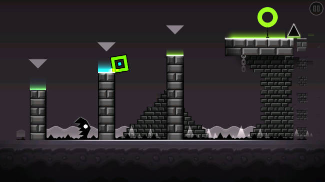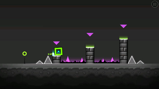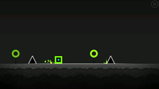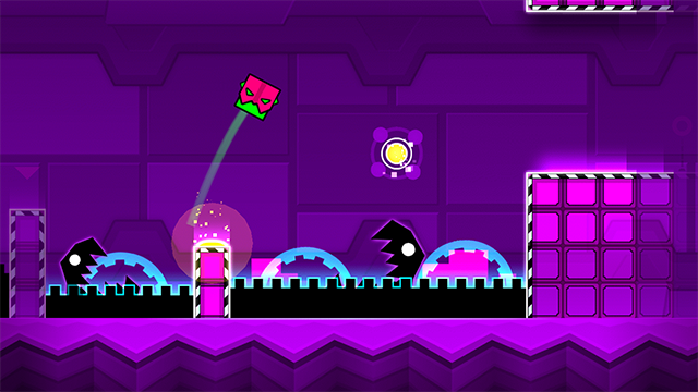 - 控制几何方块跳跃,避开前方的障碍物。