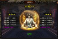 【人物转生】依靠消耗元宝来提升,每提升2级可增加1%的倍攻属性。