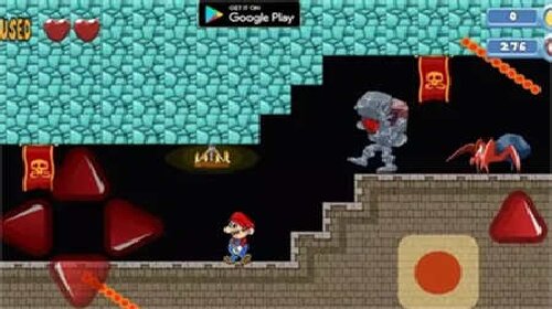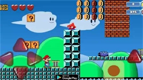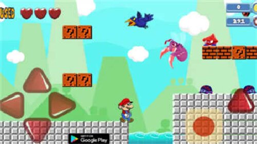 1.经典的平台跳跃玩法,需要玩家通过点击相应的按钮,控制马里奥不断的向前奔跑跳跃,收集道具和金币。