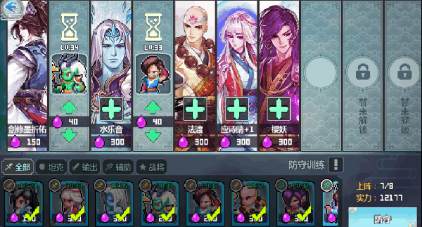 前面提到过能看到对面伙伴的阵容,这里补充一个细节:虽然显示的阵容顺序是准确的,但对方并非完全按能量进度来召唤伙伴——在防御状态下,他们可以设置延时出场(就像下面的守成大阵,能在里面调整防守的延时阵容),甚至有可能攒够1000能量后再召唤伙伴。所以大家需要根据实际情况灵活应对。