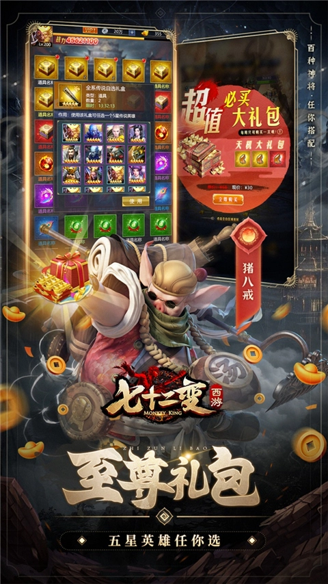 核心英雄:天蓬元帅、二郎神、哪咤、齐天大圣