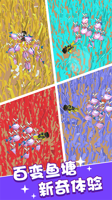 2、自动资源循环:雇佣搬运工自动收集鱼苗,设置加工队列实现24小时连续生产,离线期间仍可累积鱼骨资源。