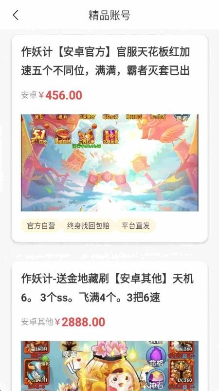 1、海量游戏账号分类清晰明确,每款游戏都设有专属栏目,助力用户迅速找到并挑选心仪的游戏账号进行购买。