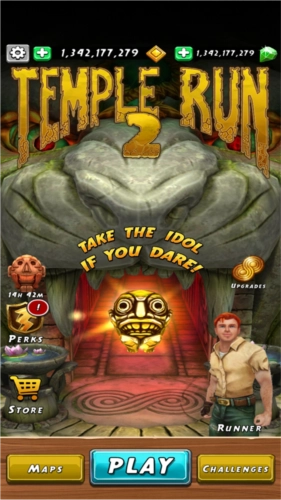 即使放慢速度,也难免会出错,这时候就得求救了。第一代求救方式是用翅膀,翅膀需要在商店购买,每个500,建议一次性买几百个留到后期用,它有时间限制,消失后双击屏幕就能再次使用。第二代则是靠宝石求救,所以跑的时候要尽量多收集宝石。关于宝石求救有个建议:要在合适的时机用,因为前期宝石很难获得,比较珍贵,如果只跑了几万分就失败了,不如重新开始,省着点用宝石;等你能力达到几千万分的水平时,再一次性用宝石来刷分。