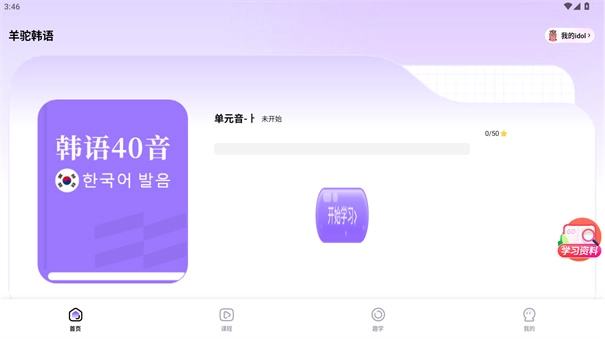 2、韩语必学的四十音可在此集中学习,无论是元音、辅音、音变还是拼读,都能在这里掌握。