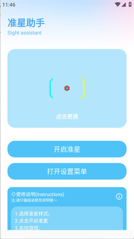 6、提供丰富多样的准心样式,用户可自由挑选,选定后开启准星功能,再启动游戏就能使用了