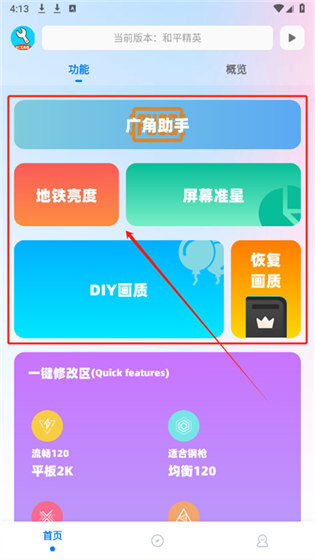 进入首页后,广角助手、地铁亮度、屏幕准心等诸多实用功能便清晰可见。