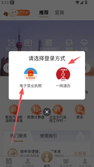 1、随申办企业云的登录方式包含电子营业执照和一网通办这两种。