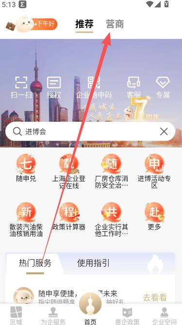 2、通过电子营业执照登录后,系统所呈现的基本功能展示界面,对应的便是营商相关的内容板块。
