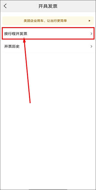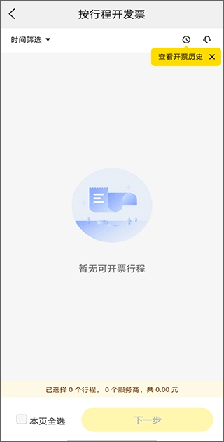 当前页面,我们既可以选择“按行程开发票”,也能点击“开票历史”查看所有的开发票记录。