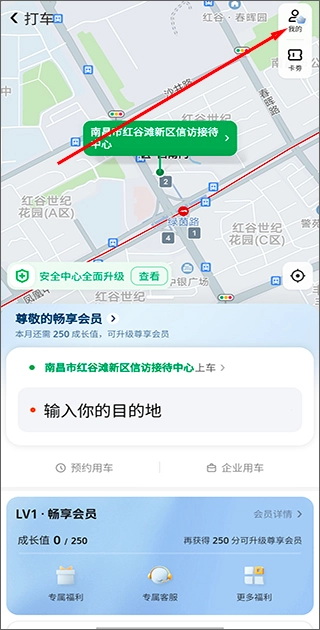 1、打开美团打车应用,点击界面右上方的“我的”按钮,进入个人信息页面;