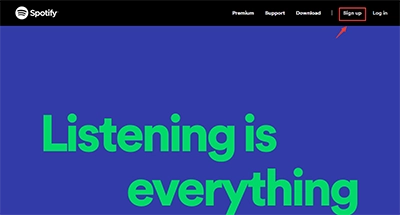 1、打开Spotify网站,找到页面右上角的“Sign Up”按钮并点击,以此进入注册流程;