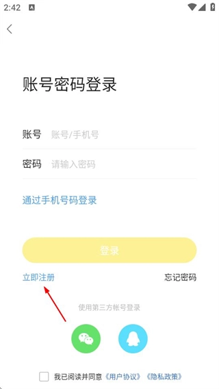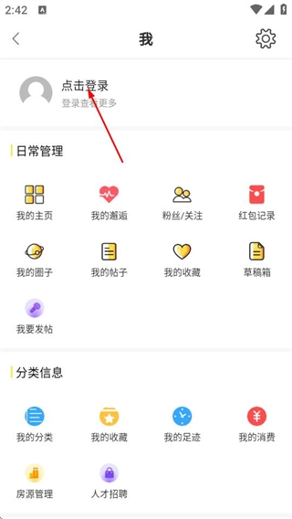 2、进入个人页面后,点击登录区域,即可进入账号登录界面。