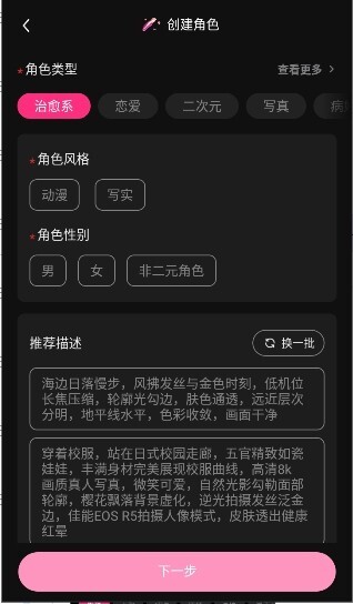 2、角色类型丰富多样,包括迷人、风趣、体贴、爱冒险等不同特质,用户能够依据自身偏好,挑选出契合个人幻想的AI伴侣。