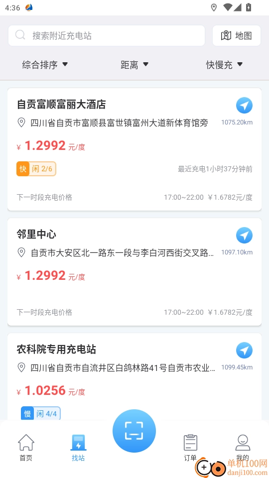 3. 进入“找站”页面后,就能查找附近的充电站,选择想要的充电站点击进入即可。