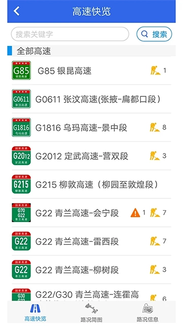 2、在此处能够查看甘肃高速的所有路况,包括高速快览、路况简图以及路况信息。