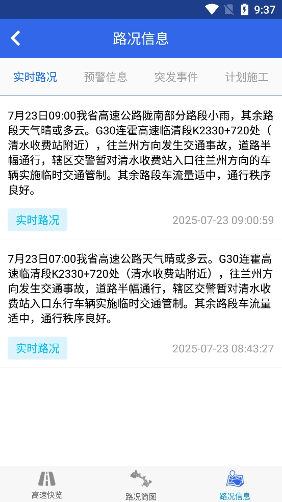 4、还提供甘肃高速路况直播信息,方便你在出发前提前了解每条高速的实时状况