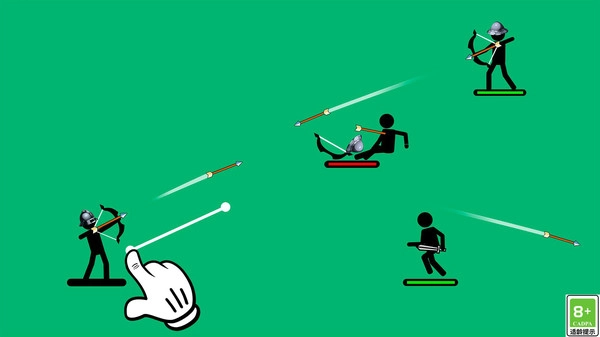 2、长按屏幕进行拉弓蓄力,通过滑动来调整瞄准角度,松开手指释放箭矢,只要击败对手或者完成目标就能通关。