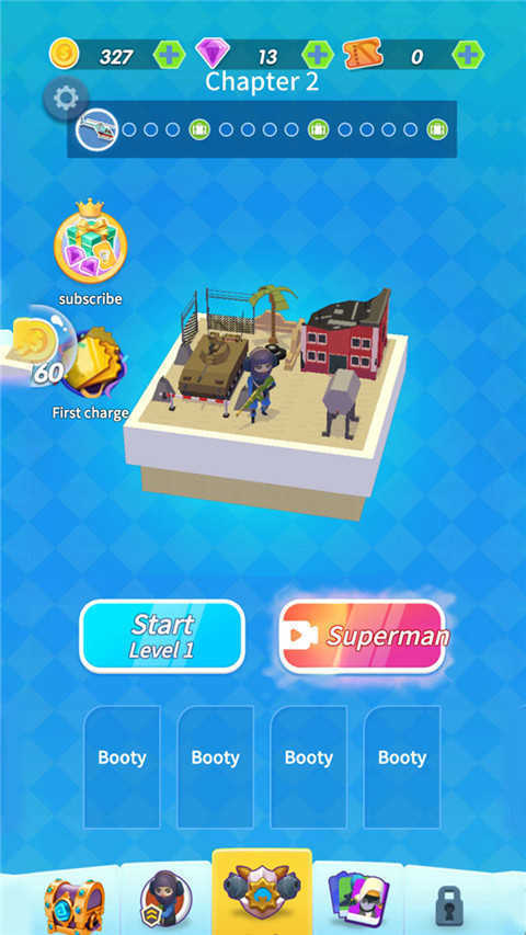 1、打开游戏后,选择位于中间位置的Battle界面,接着点击蓝色按钮即可进入关卡。