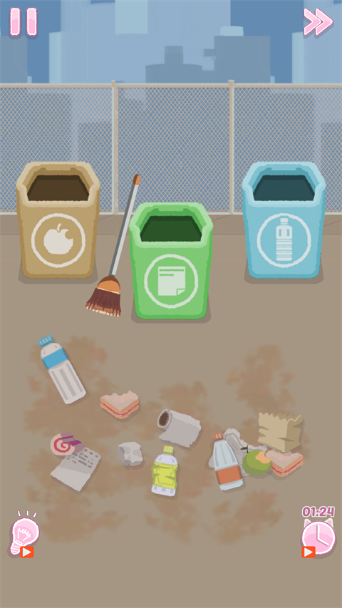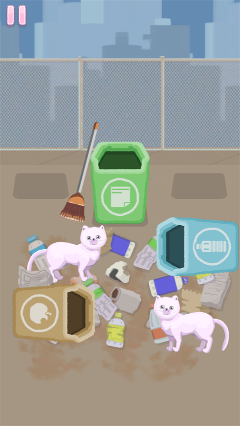 3、来到游戏内我们先将垃圾桶摆放整齐。