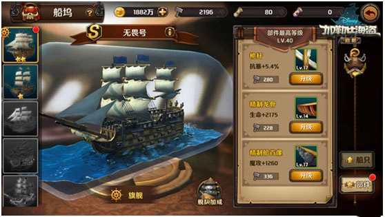 b) 部件升级:每艘船只都配备专属部件,通过提升这些部件的等级,并将该船只指定为旗舰,能够增强特定的属性。