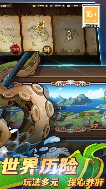 4、公会比拼:在公会里,每位海盗都肩负着建设公会的责任。公会商店、公会训练营、公会荣誉这些设施,是公会为海盗们提供各类福利的依托。公会建设离不开海盗们的无私捐献,捐献得越多,公会设施的等级就越高,能为海盗们带来的福利也会更丰厚。高级别的公会能助力海盗们更快成长,让他们更从容地应对海上的重重风浪。