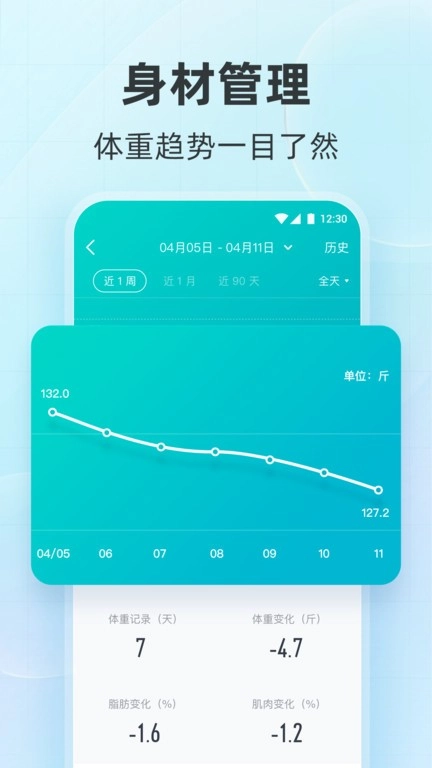 浩庆组建了专业的健康与减肥运动专家团队,还运用精准的智能算法,能依据您身体数据的动态变化给出智能分析。