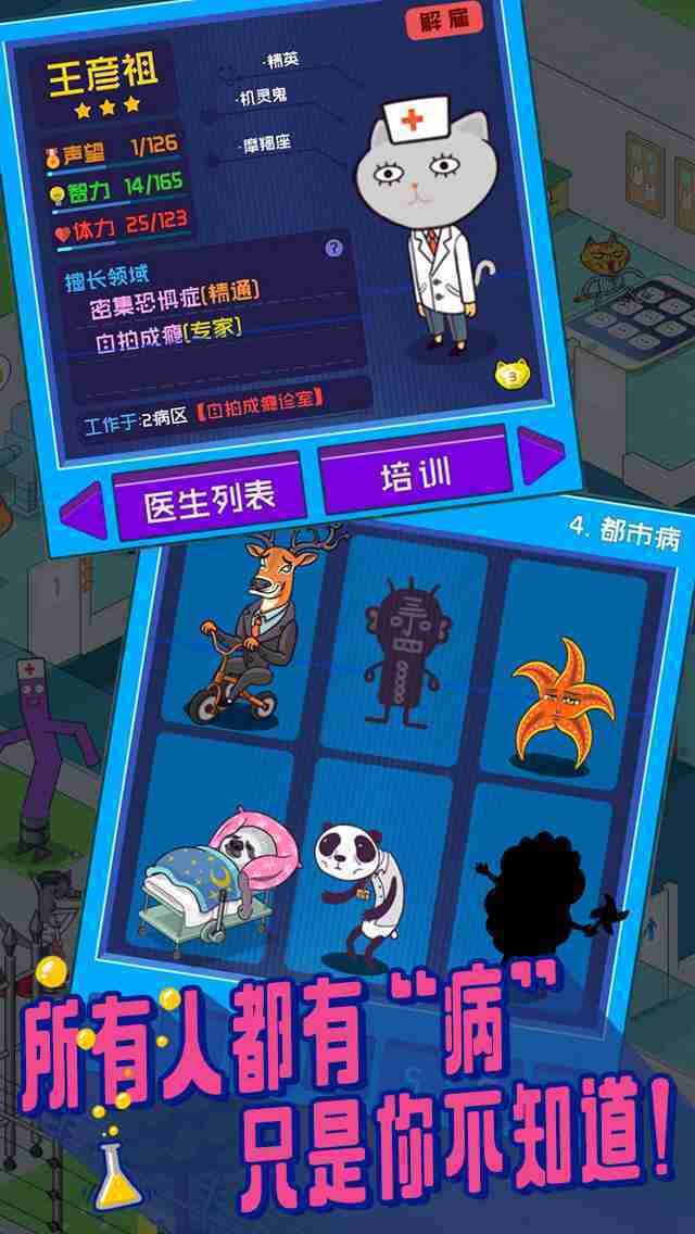 1、在游戏里运营着一家规模不小的医院,每天都会接诊形形色色的奇特患者。