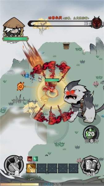 4.在肉鸽对战过程中,可以使用超强技能攻击小怪,成功击败它们后,能收获灵石、万宝精华等相应宝物。